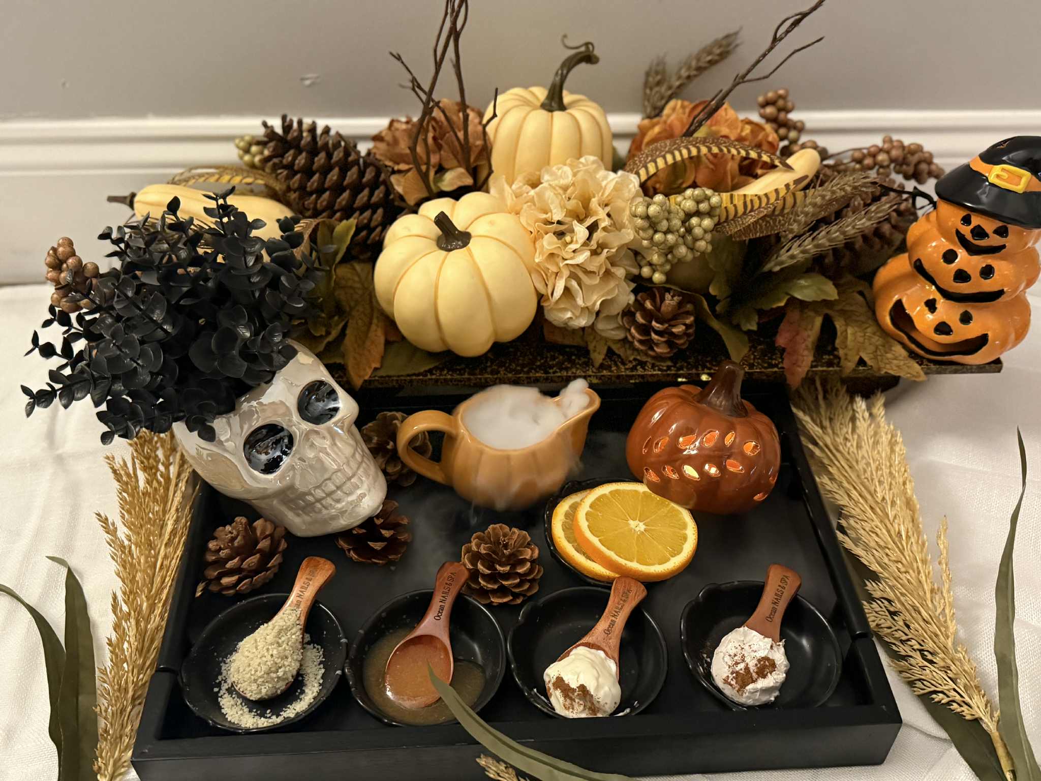 Get cozy this fall with our pumpkin spice pedicure, a perfect seasonal pampering start with bath bombs and a smoothing pumpkin honey cinnamon salt soak, followed by nail trimming shaping, cuticle care and callus removal if need. A pumpkin honey scrub with lime and oranges gently oxfoliates. The treatment will be take care of with 10 minutes massage with hot stones and wooden rollers very relaxing ending with pumpkin pie butter. Finally ending with cappochino mask with fragrance awakens and rejuvenates the skin with the invugorating richness of roastes beans paired with a creamy essence